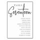 Des cartes numériques simples et chic en noir et blanc classique font une déclaration élégante à votre mariage ou événement. Le design comporte "table [nombre]" dans un mélange d'écriture serif classique et manuscrite, avec des noms d'invités individuels en dessous. Le design se répète de part et d'autre. Cartes numérotées individuellement vendues séparément; commandez chaque numéro de table individuellement de notre collection.
