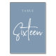 Numéro De Table Tableau à script à main bleue Dusty SIXTEEN