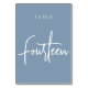 Numéro De Table Tableau couché à main bleu Dusty QUATORZE