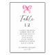 Coquette à arc rose simple et élégant minimaliste mariage avec tableau et numéro de table.