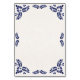 This Talavera Blue Floral Minimalist Spanish Wedding Table Number design features a minimalist approach with delicate, symmetrical blue floral motifs placed in each corner and along the edges. The small, leaf-like shapes create a sense of movement while maintaining an airy, open space in the center, allowing for ample text placement. The simplicity and elegance of the pattern evoke traditional Talavera tiles, giving the design a classic Mexican artisanal feel.