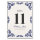 Numéro De Table Talavera Blue Floral Minimalist Spanish Wedding
