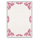 This Talavera Red Floral Minimalist Spanish Wedding Table Number design features a minimalist approach with delicate, symmetrical red floral motifs placed in each corner and along the edges. The small, leaf-like shapes create a sense of movement while maintaining an airy, open space in the center, allowing for ample text placement. The simplicity and elegance of the pattern evoke traditional Talavera tiles, giving the design a classic Mexican artisanal feel.