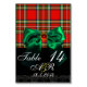 NUMÉRO DE TABLE TARTAN ÉCOSSAIS ROUGE AVEC MONOGRAMME À RUBAN VERT