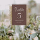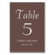 Guidez vos invités de mariage à leur table avec cette carte de numéro de table de style simple qui comporte des lettres blanches et stylisées sur un arrière - plan de couleur taupe tendance. Le design est de chaque côté de la carte. Modifiez votre carte pour modifier le numéro de table, le nom du couple de mariages et la date. Commandez les cartes séparément pour chaque numéro de table.