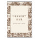 This is a vintage style image featuring an elegant dessert bar invitation. The central text, "DESSERT BAR," stands out in classic typography against a soft beige background, surrounded by a charming border of sepia-toned botanical illustrations. It evokes a sense of nostalgia and warmth, perfect for inviting guests to indulge in sweet treats at a gathering or event. The overall mood is welcoming and sophisticated, making it ideal for weddings, parties, or any celebration where you want to add a touch of timeless charm.
