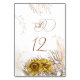 Les tournesols d'automne colorent cette carte de numéro de table Boho. Calligraphie délicate et dessin à l'encre, avec la trace d'éléments florentins. Artistique, élégant et unique.