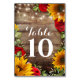 Tournesol & Rose Rustic Mariage Numéros de tableau. Doté de tournesols jaunes et de roses rouges sur un arrière - plan rustique en planches de bois. Les produits correspondants peuvent être trouvés ici : https://www.zazzle.com/collections/rustic_sunflower_and_roses-119858480821565936