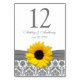 Numéro De Table Tournesol gris jaune Mariage damassé