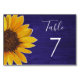 Numéro De Table Tournesol sur bois rustique bleu marine de mariage