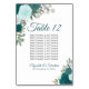 Ces belles cartes de numéro de table mariage présentent un design chic boho élégant avec des roses d'aquarelle peints à la main dans les tons turquoises, turquoise, aqua et cyan. La carte comprend une liste de noms pour que vos invités aient encore plus de facilité à trouver la bonne table.