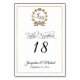 "Script Elegant Typographie Black Gold Wreath Table Numéro." Personnalisés avec vos monogrammes, noms et date de mariage (ou autre événement), ce sont des cartes numériques simples, mais sophistiquées et élégantes. Art dessiné graphiquement par Audrey Jeanne Roberts, artiste et designer de renommée internationale, copyright.