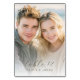 This wedding table card features a warm, intimate photograph of two individuals with their heads gently touching, set against a softly blurred background that highlights the subjects. The color palette includes soft beige tones and subtle hints of blue, creating a serene and harmonious atmosphere. Elegant script typography at the bottom reads "table 12," followed by customizable names in a clean sans-serif font, adding a personal touch to the design. The overall mood is one of affection and celebration, making it perfect for a romantic wedding setting.