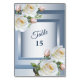 White Floral Elegant Blue Gray Table Number. Unique, beautiful, modern design. Easy to be customized. Font style, size, and colors can be changed. Matching items available.