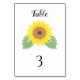 Numéro De Table Yellow Watercolor Sunflower Wedding