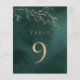 Numéro de tableau du Mariage botanique Emerald Green & Gold