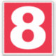 Numéro huit. Numéro 8 Numéro individuel comme autocollant. Rouge et blanc.
