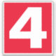 Numéro quatre. Numéro 4 Numéro individuel comme autocollant. Rouge et blanc.