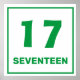 Numéro vert dix-sept sur arrière - plan blanc avec bordure verte. Aidez votre petit à apprendre les chiffres avec ce chiffre dix-sept design.