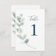 Nombres de table au papier aquarelle moderne Eucalyptus.
