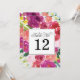 Ces cartes de numéro de table de mariage présentent des fleurs aquarelles modernes.
