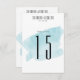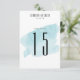 Un numéro de table de mariage moderne avec un fond à l'aquarelle turquoise.