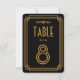 Ces numéros de table présentent une palette de couleurs noire et or, un cadre géométrique et d'autres détails stylistiques, tous inspirés de l'Art Déco et des années folles. Vous pouvez personnaliser les champs de texte d'exemple à votre goût.