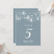 Cartes de numéro de table de mariage imprimées abordables avec un modèle DIY simple pour la personnalisation. Ce design rustique chic présente des guirlandes de lumières scintillantes et des pots Mason sur un fond bleu poussiéreux. Personnalisez chaque numéro de table dont vous avez besoin et ajoutez-les individuellement à votre panier (remarque : l'ajout d'un grand nombre de cartes à votre panier entraînera une impression avec le même numéro). Utilisez les outils de conception pour choisir les polices et les couleurs que vous aimez ou téléchargez vos propres photos pour créer un design unique pour la décoration de vos tables de mariage !