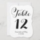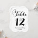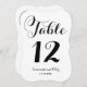 Ce numéro de table de mariage élégant présente les noms des mariés dans un script inspiré de la calligraphie et une forme élégante découpée en die-cut de cadre.