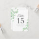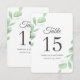Feuilles d'eucalyptus aquarelle. Feuillage botanique vert. Numéros de table pour célébration de mariage. Le design se répète sur le verso.