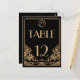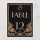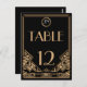 Une carte postale élégante, de style vintage, avec le thème "The Great Gatsby" des années 1920 dans les tons noir et or. Un arrière - plan noir met en valeur la bordure géométrique complexe de style Art Déco dans les tons beiges dorés. Les monogrammes de Bride et Groom sont mis en surbrillance à l'aide d'une police de couleur gris argenté contrastée.