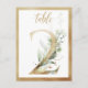 Belle carte de numéro de table avec un motif botanique - une illustration aquarelle de feuillage vert et numéros à effet doré. Table 2. Veuillez vérifier tous les numéros disponibles