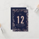 Numéros de table floraux bleu marine élégants et o