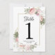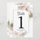 Un cadre doré et des roses roses entourent votre numéro de table. Table est écrit ci-dessus dans un texte élégant. Deux lignes de texte ci-dessous vous permettent de personnaliser l'occasion.