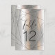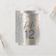 Placez la table de mariage parfaite avec ces cartes uniques. Les pièces de cette suite mariage moderne présentent d'élégants accents manuscrits et un arrière - plan métallique argenté élégant, surmonté d'un délicat motif géométrique en noir basique. Les initiales de la mariée et du marié ainsi que la date et les numéros de mariage peuvent être customisés à l'aide du modèle fourni. Cherchez ID648 pour voir toutes les pièces de cet ensemble élégant.