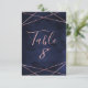 Design géométrique bleu marine et or rose avec des polices à lettres manuscrites tendance. Cartes de numéros de table de mariage élégantes, simples et modernes avec une police de script manuscrit tendance ! ~ Consultez ma boutique pour voir l'ensemble de la collection de mariage avec ce design !