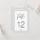 Belle dans sa simplicité, les pièces de cette suite de mariage présentent des accents de script manuscrits modernes et une palette de couleurs noir et blanc classique qui peut être facilement modifiée pour répondre à vos préférences. Une bordure géométrique subtile met en valeur cette carte de numéro de table ainsi que les initiales des mariés. Recherchez ID523 pour voir toutes les pièces de cet ensemble élégant.