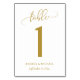 Bounce Calligraphy Script Mariage Numéros de table (Or) : Ces numéros de table comportent une calligraphie rebondissante moderne en or. Modifiez vos noms et votre date en bas ou supprimez-les si vous n'en avez pas besoin. Placez le numéro de table pour ajouter un bel affichage moderne à vos tables de réception de mariage.
