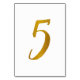 Numéro de table 5 : Cette carte de numéro de table en écriture manuscrite décontractée est présentée dans un faux foil doré.