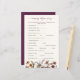 Le Nursery Rhyme Baby Game présente des fleurs sauvages d'aquarelle peintes à la main dans des tons bordeaux, or, crème et violet, complétées par une végétation luxuriante. Idéales pour toute saison, les fleurs sauvages sont disposées dans un magnifique bouquet latéral, offrant une esthétique moderne et fraîche. Avec un motif bordeaux sur le dos, cette carte de jeu combine polyvalence et sophistication, offrant une activité amusante et élégante pour vos invités de douche bébé à profiter.