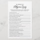 Achetez ce jeu et profitez d'une carte de Quiz de Rhyme Nursery de haute qualité pour votre événement! Design noir et blanc neutre pour le genre. RÉPONSES : 1. pique de poivre mariné; 2. boucher, boulanger, bougeoir; 3. mur; 4. femme de l’agriculteur; 5. grâce; 6. trois sacs remplis; 7. Sa femme ne pouvait pas manger maigre; 8. neuf jours; 9. mitaines; 10. gâteau; 11. embrassait les filles; 12. tuffet; 13. Tarte de Noël ; 14. Pour donner un os au pauvre chien; 15. pour son souper; 16. pieman; 17. cloches d'argent, coquillages, jolies domestiques; 18. cochon.