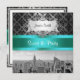NY City Skyline BW B3 Damask F2 - Sweet sixteen Party Invitation personnalisable Invitations et accessoires avec une vue iconique de l'horizon de New York City du sommet du 30 Rockefeller Center, avec une photo en noir et blanc de l'Empire State Building, Lower Manhattan y compris le World Trade Center. Il présente également un motif damassé noir contre un arrière - plan gris argenté dégradé et un ruban turquoise. Il dispose également d'un étiquette à dégradé blanc dans un cadre argenté. Ce produit fait partie d'une suite de conceptions assorties qui sont facilement personnalisables pour de nombreuses occasions et événements. Si vous avez besoin de cartes RSVP assorties, notes de remerciements, timbres, magnets ou autres accessoires, veuillez consulter nos autres annonces. Si vous ne voyez pas un produit correspondant qui vous intéresse, ou si vous souhaitez voir ce design dans différentes couleurs ou avec différentes photos NYCisMyMuse que vous voyez dans notre magasin, veuillez nous contacter et nous serons heureux de vous accueillir. Veuillez noter qu'il s'agit d'une conception graphique et qu'elle ne contient aucun tissu, métal ou gaufrage réel.