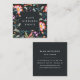 Les élégants cartes de visite floraux, en forme de carré unique, présentent un motif arrière - plan de fleurs et de verdure aux couleurs vives, avec votre nom ou nom d'entreprise et le titre affiché en blanc sur un carré noir épais. Ajoutez vos coordonnées complètes à l'envers. Parfait pour les wedding planners, les planificateurs d'événements et autres professionnels de l'occasion spéciale.