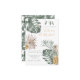 Feuilles élégants et modernes Palm, papillon et éléments botaniques floraux. Celui-ci s'adresse à un mariage, mais vous pouvez modifier le libellé pour l'adapter à vos besoins. Merveilleux pour un élégant mariage Tropical beach Island Oasis ou mariage de destination! Besoin d'aide pour la mise en page, envoyez-moi un courriel à tkatz@me.com