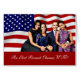 Peinture à l'huile du président Barack Obama et de la famille avec le drapeau américain derrière eux.