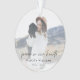 Ornement funéraire moderne et minimaliste en forme de photo pour Noël pour célébrer la vie de votre proche dans un style de design épuré et simple avec une police de caractères manuscrite décontractée. Le design peut être facilement personnalisé avec votre propre photo et texte pour créer un hommage spécial pour les funérailles, la commémoration ou la célébration de la vie de votre proche. L'image affichée est à des fins d'illustration uniquement et doit être remplacée par votre propre photo. L'image de remplacement montre une jeune femme aux cheveux blonds ondulés portant un chapeau et une robe-pull blanche assise sur une vieille jeep dorée dans les montagnes câlinant un adorable chien noir.