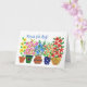 Une carte bonne d'obtention bientôt avec la salutation dans le Suédois et une rangée des pots de fleurs de fleurs colorées, d'un collage de papier peint à la main par Judy Adamson. L'intérieur est laissé vide pour votre propre message et svp me contacte par mon magasin si vous voudriez une salutation différente de couverture.