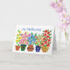 Une carte bonne d'obtention bientôt avec la salutation dans le Portugais et une rangée des pots de fleurs de fleurs colorées, d'un collage de papier peint à la main par Judy Adamson. L'intérieur est laissé vide pour votre propre message et svp me contacte par mon magasin si vous voudriez une salutation différente de couverture.