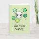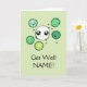 sympathie de l'Express pour un être cher malade avec cette adorable cellule sanguine blanche et triste. Triste dessin de globules blancs entouré de mignons dessins de particules de virus souriants verts avec des crocs et des bords frileux, le tout entouré d'antigènes sur un arrière - plan vert, "Get Well [NAME]!" ou votre choix de texte imprimé ci-dessous.
