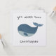 Cette carte amusante est la façon parfaite de souhaiter à quelqu'un spécial une reprise rapide. Le design comprend une jolie baleine avec un libellé de typographie amusant qui dit "obtenir la baleine bientôt" et un nom d'exemple qui est facile à personnaliser. Le verso de la carte est vide pour écrire à la main un message personnel ou vous pouvez ajouter un texte plus typé ou une photo de votre choix en cliquant sur le bouton modifier.